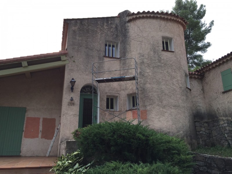 Ravalement et mise en peinture de façade à Solliès-Pont : nettoyage, traitement des fissures et peinture Tollens. AM Couverture intervient sur Toulon et la Farlède.