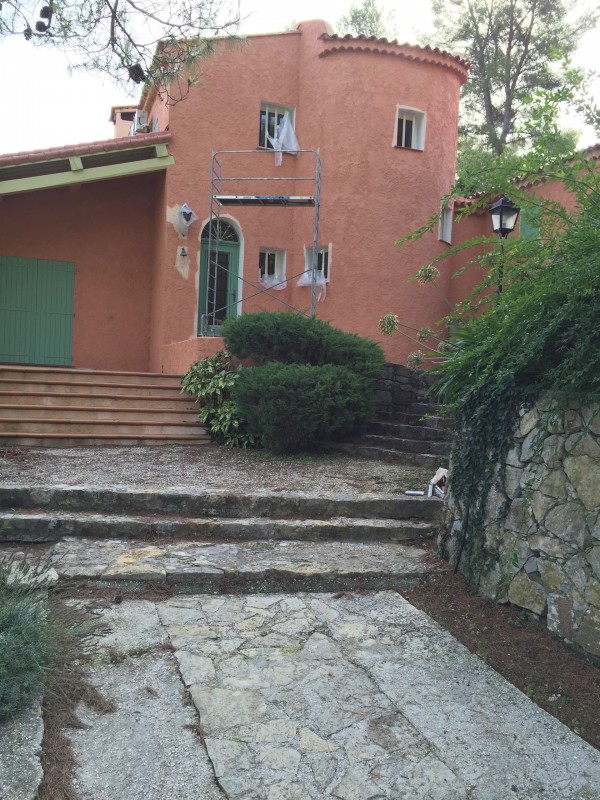 Nous avons donc nettoyé dans un premier temps toute la façade pour ensuite faire des reprises d'enduit aux endroits où il y avait des fissures et enfin nous avons terminé après séchage par la mise en peinture de la totalité de sa façade pour un rendu propre et coloré.